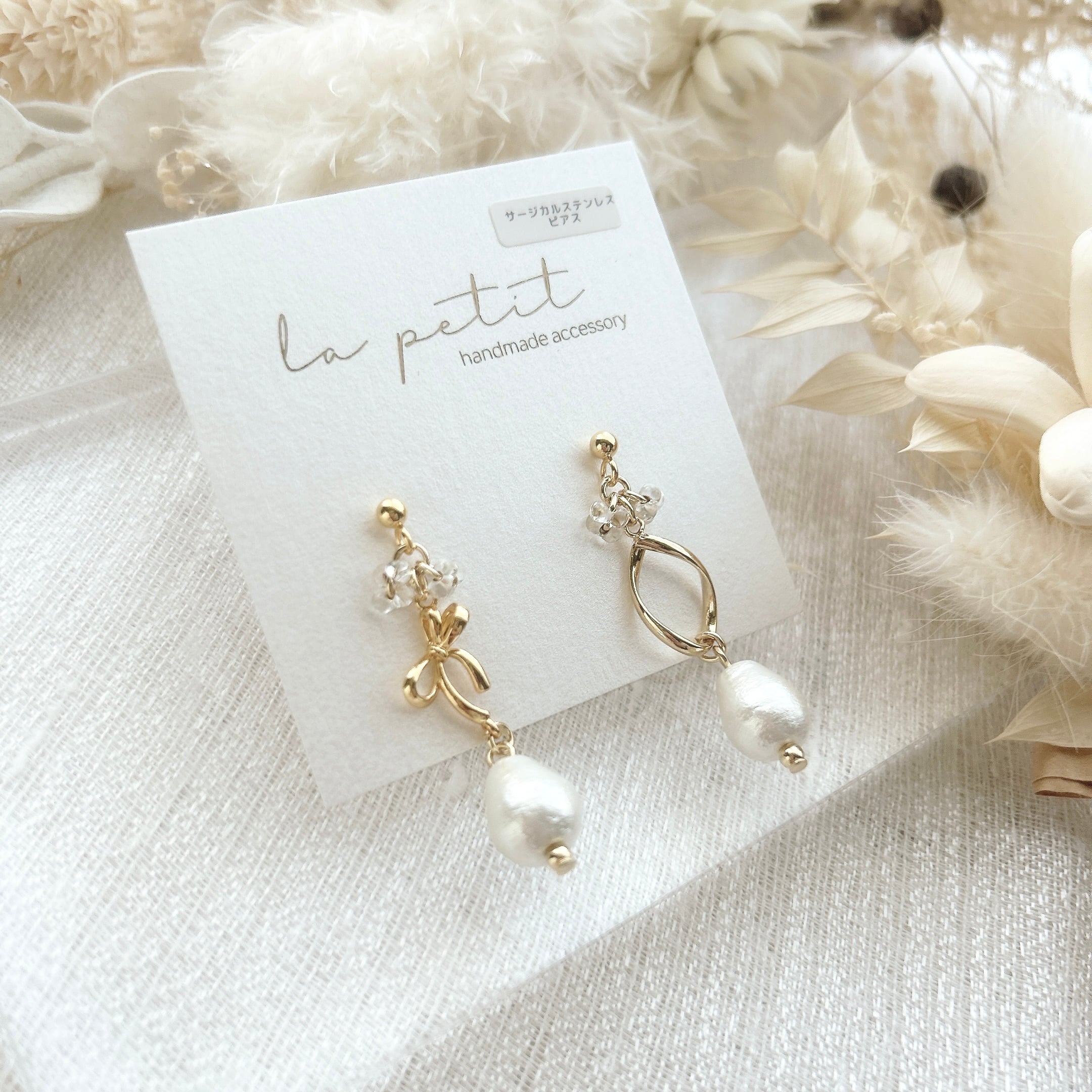 こちらは、ハンドメイドのピアス/イヤリングです。