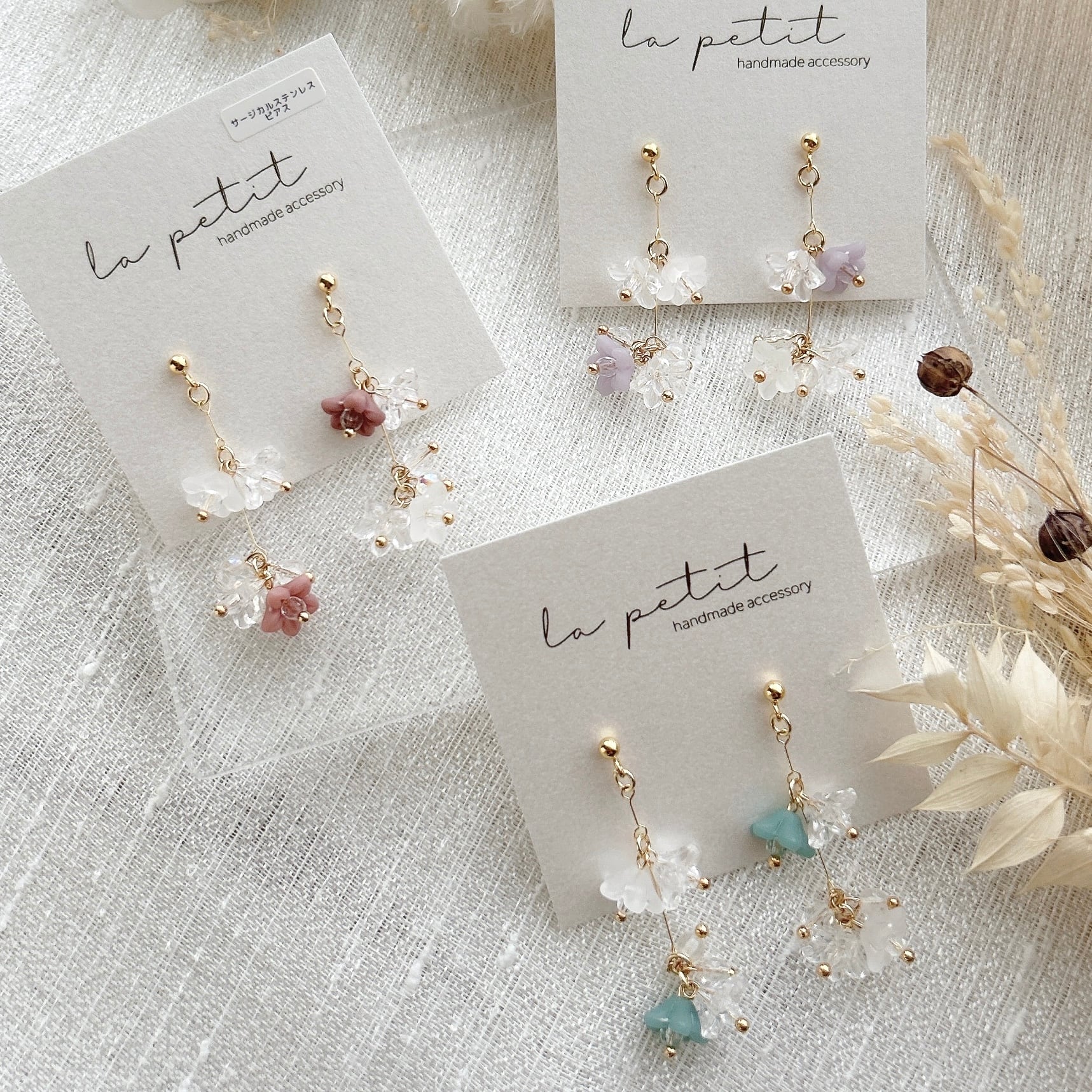 こちらは、ハンドメイドのピアス/イヤリングです。