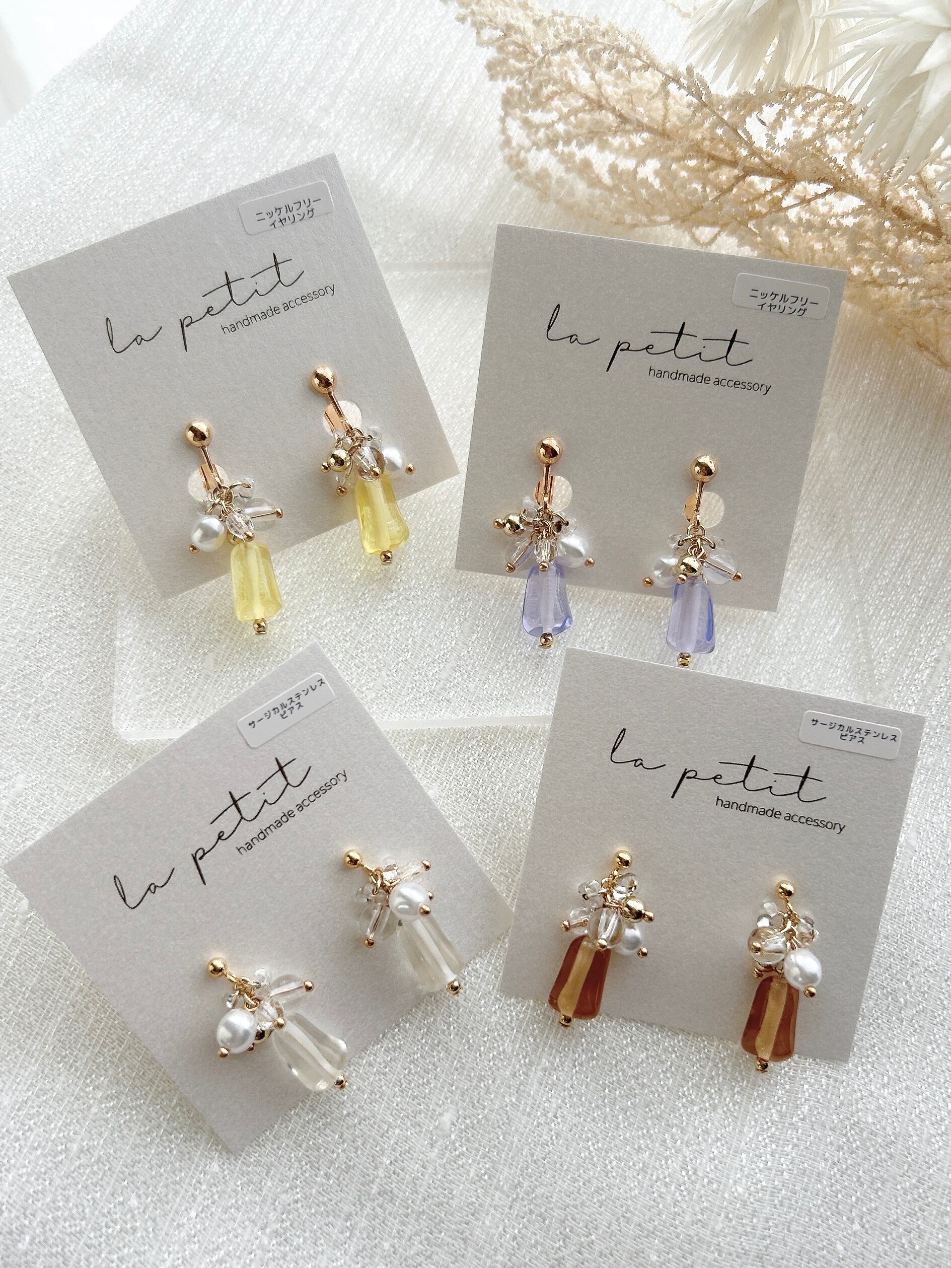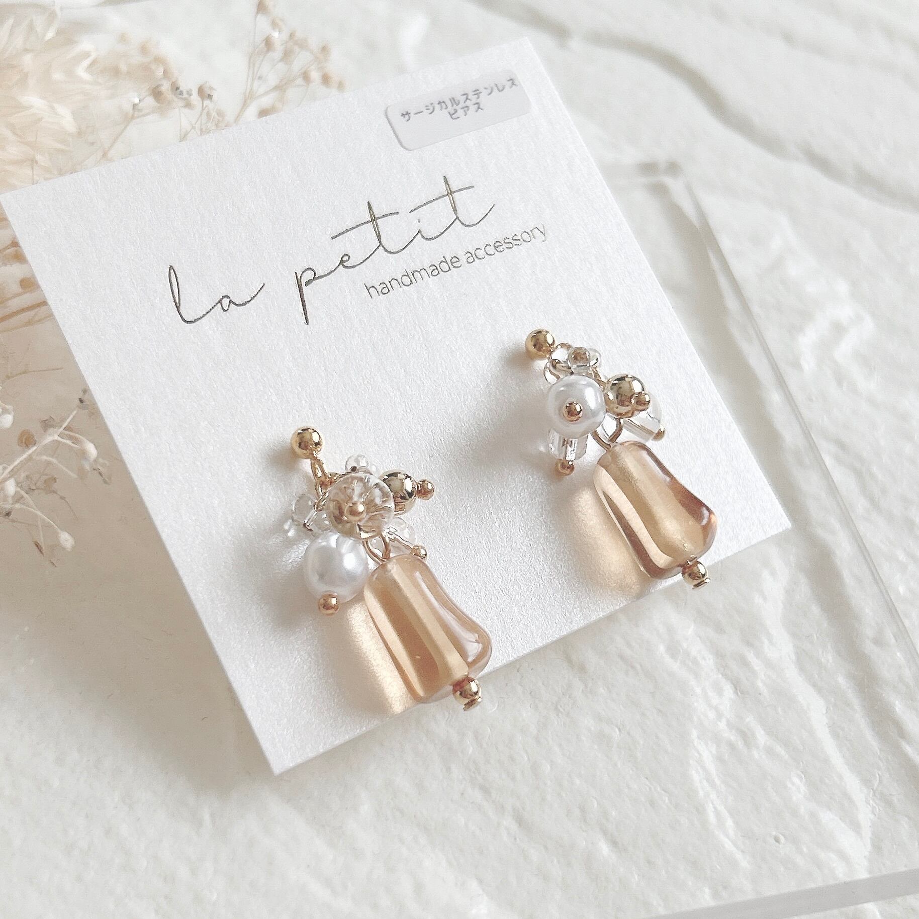 こちらは、ハンドメイドのピアス/イヤリングです。