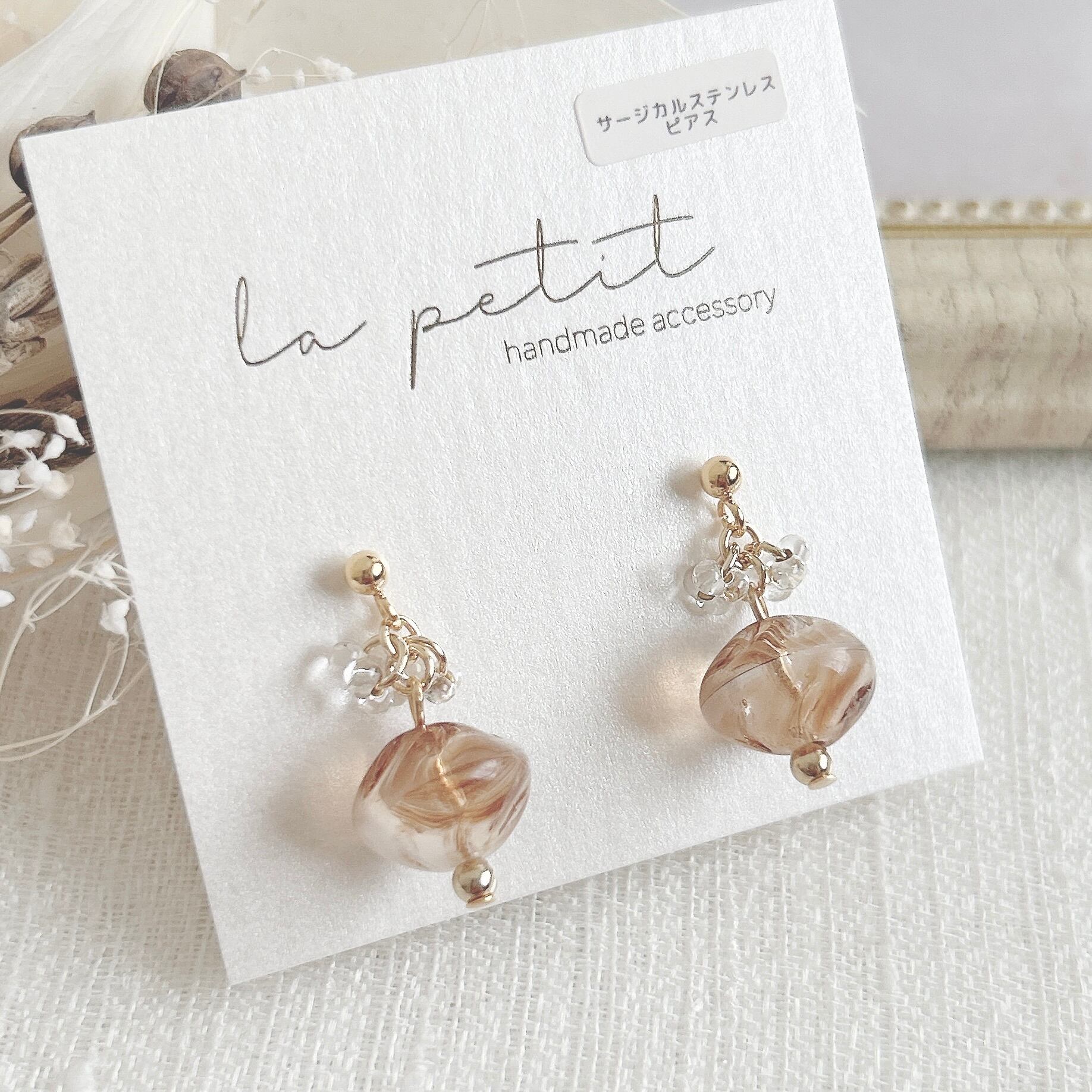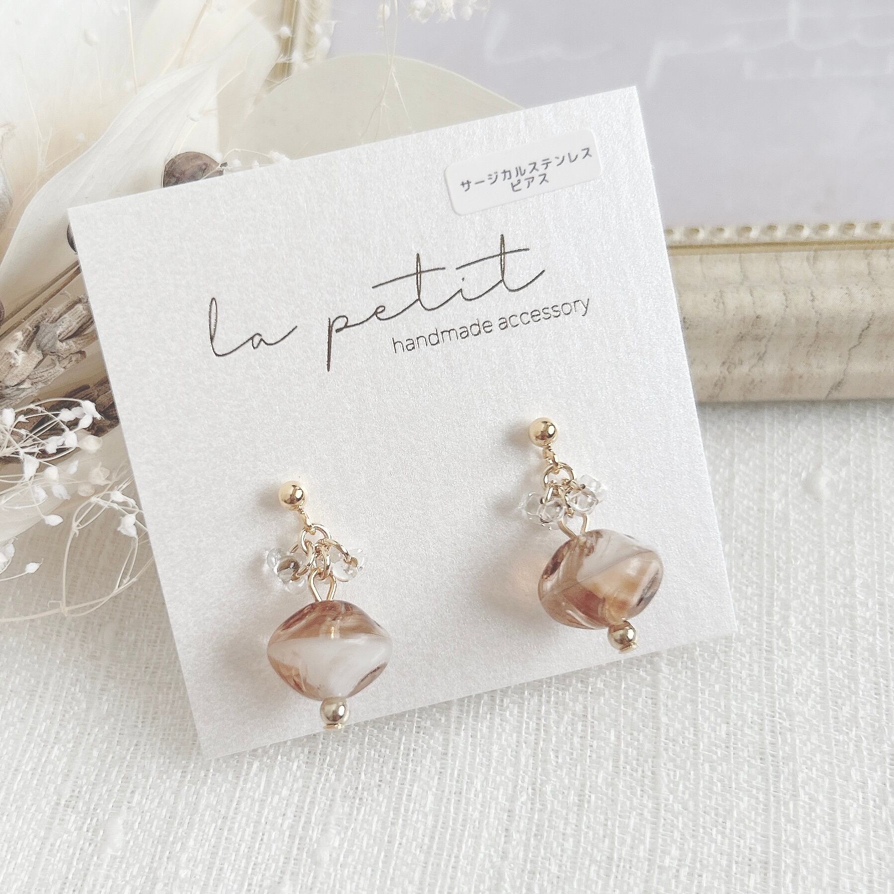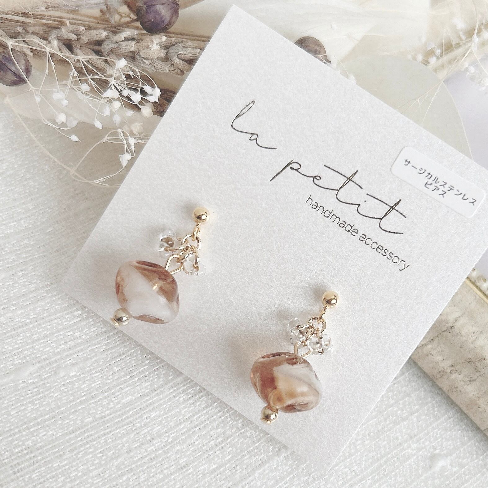 こちらは、ハンドメイドのピアス/イヤリングです。